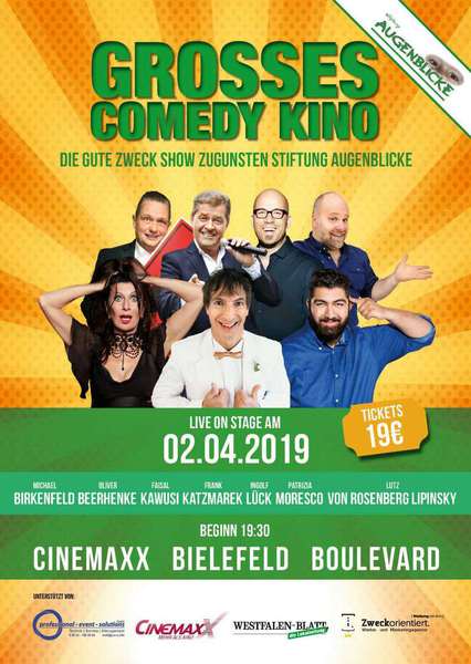 Das große Comedy-Kino 2017, 2019 und 2020 für die Stiftung Augenblicke mit vielen Comedy-Stars live auf der Bühne. Lachen für den guten Zweck im Cinemaxx Bielefeld.