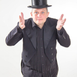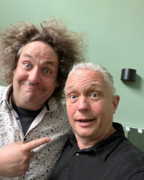 Mittlere Reihe: Konrad Stöckel mit Frank, FinaleComedy Schuppen 2024, Ingo Nommsen mit Frank und Ingolf Lück mit Frank beim Tanzen.